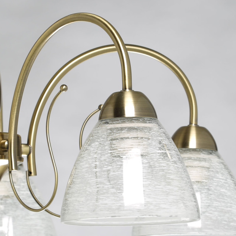Дизайн для ценителей классических традиций.Металлический декор основания цвета античной бронзы добавляет легкости модели.Стеклянные полупрозрачные плафоны с рисунком отлично пропускают свет.Заменяемые источники света удобны в эксплуатации.