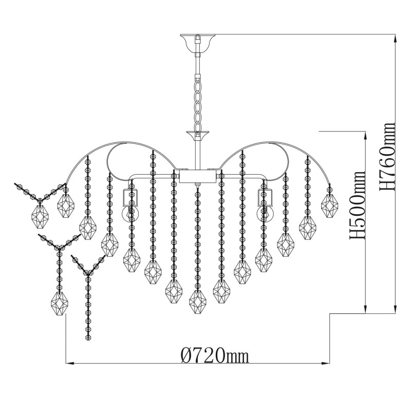Металлическое основание гальванизировано в цвет золота. Светильник декорирован хрусталем в форме ромбов, гальванизированным в цвет янтаря и прозрачным хрусталем в форме октагонов.