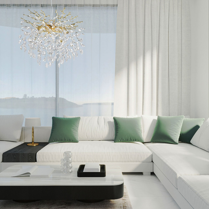 Современный дизайн с природными мотивами. Трендовая флористика, природа в доме. Декор из прозрачного хрусталя в форме око придает светильнику индивидуальность. Заменяемые источники света удобны в эксплуатации. Возможность регулировать комфортную высоту.