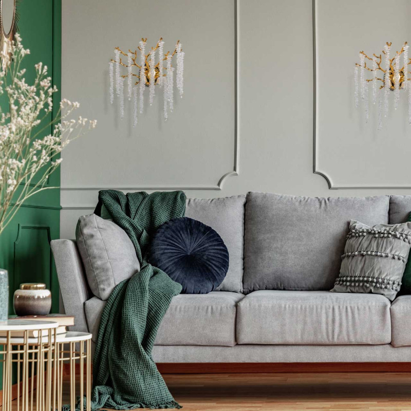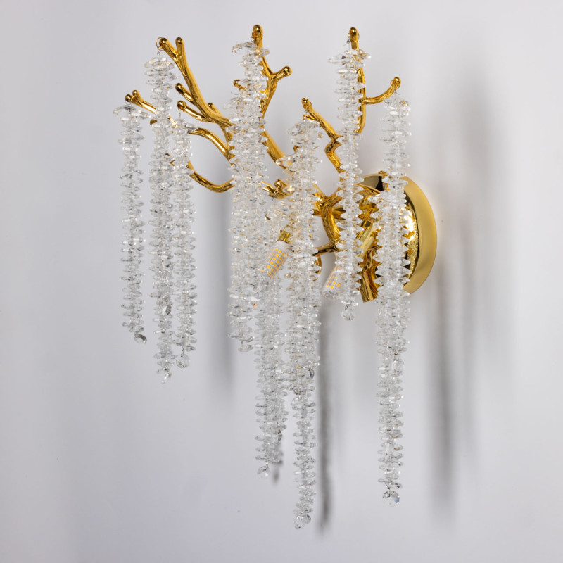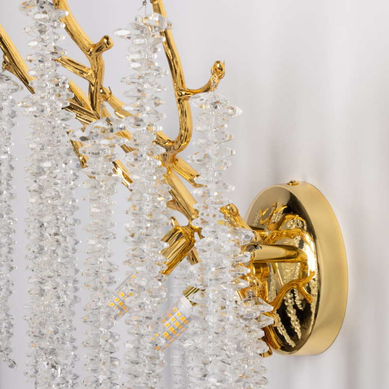 Современный дизайн с природными мотивами. Трендовая флористика, природа в доме. Декор в виде хрустальных гроздьев придает светильнику индивидуальность. Заменяемые источники света удобны в эксплуатации.
