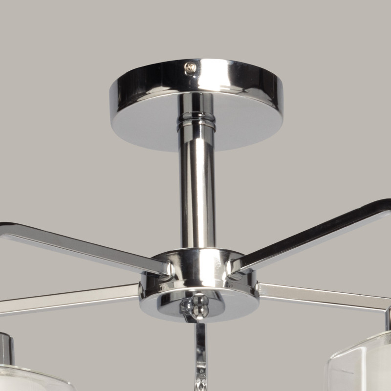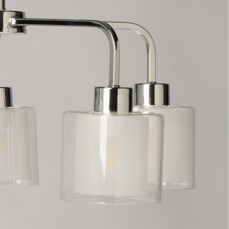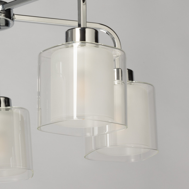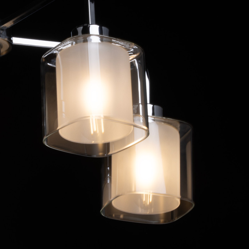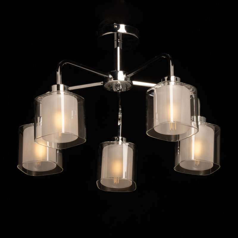 Эта потолочная люстра станет стильным акцентом в вашем интерьере. Основание люстры выполнено из металла цвета хром, что придает ей современный и элегантный вид. Плафоны представляют собой двойную конструкцию, выполненную из стекла прозрачного и белого цвета, обеспечивая мягкое и равномерное освещение. Современный стиль данной люстры потолочной идеально впишется как в кухню, так и в зал или спальню. Компактная высота потолочного светильника позволяет использовать его даже в помещениях с низкими потолками, не создавая визуального дискомфорта. Заменяемые лампы с цоколем Е27 дают возможность выбрать необходимую яркость и цветовую температуру освещения для ваших нужд. Общая мощность светильника на натяжной потолок составляет 300W, что обеспечивает значительную площадь освещения — до 15 кв. м. Это делает люстру на потолок отличным вариантом для гостиных и кухонь, где требуется качественное освещение. Люстра с плафонами потолочная подходит для различных стилей интерьера благодаря своему нейтральному дизайну и универсальным цветам. Люстра для комнаты добавит изысканности и уюта вашему дому, будь то зала или спальня. Эта потолочная люстра — не только функциональность, но и эстетика. Выбор этой модели позволит создать гармоничную атмосферу в любом помещении вашего дома.
