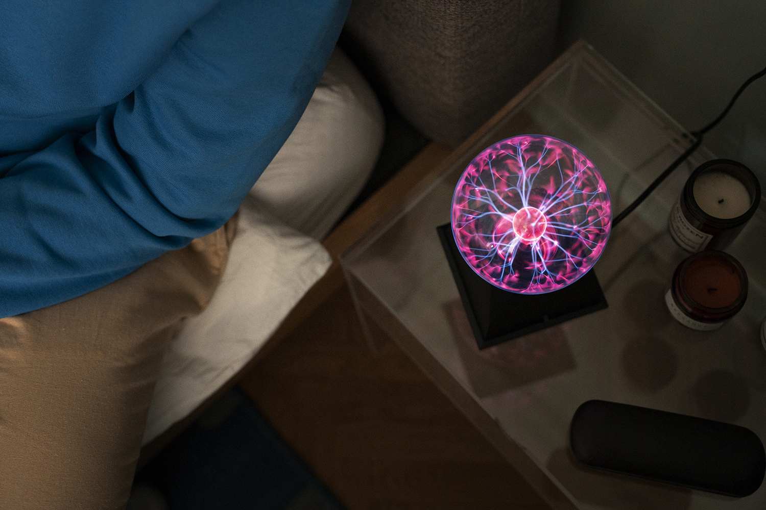 Хорошо работают светильники с эффектом «живого огня» — современные LED-лампы, имитирующие мерцание пламени свечи. Их неровный, пульсирующий свет действует гипнотически и помогает быстро отключиться от рабочих мыслей.
